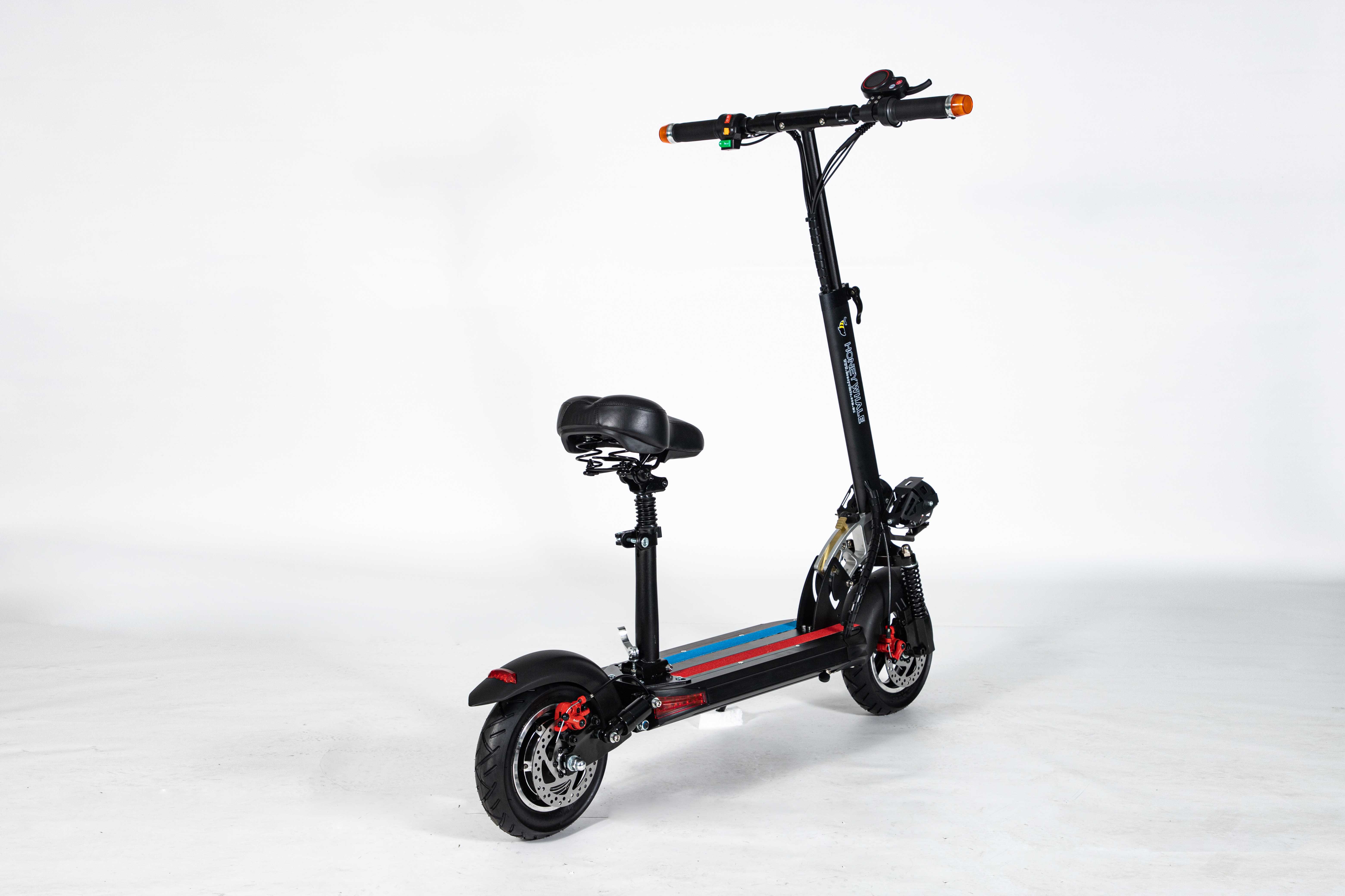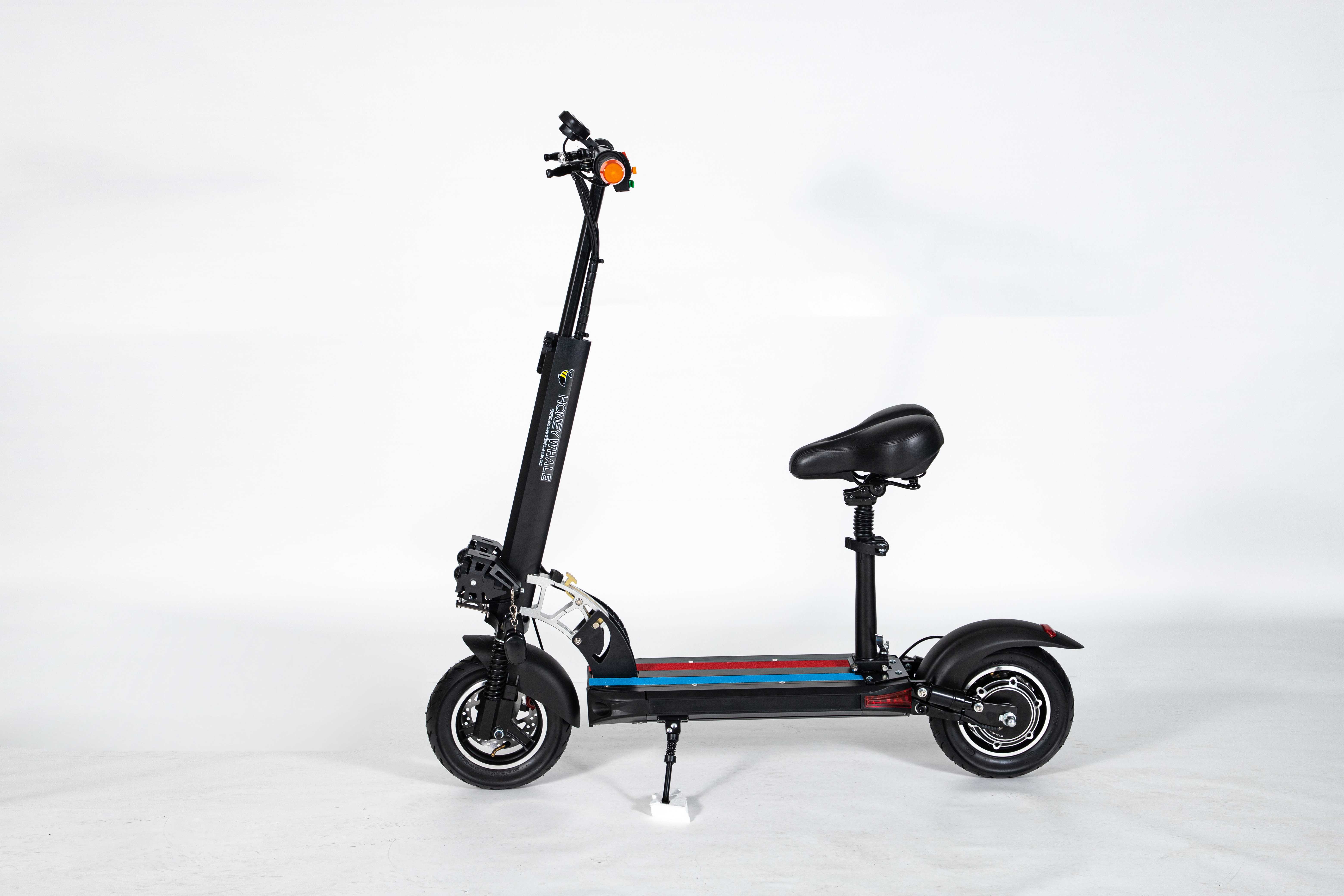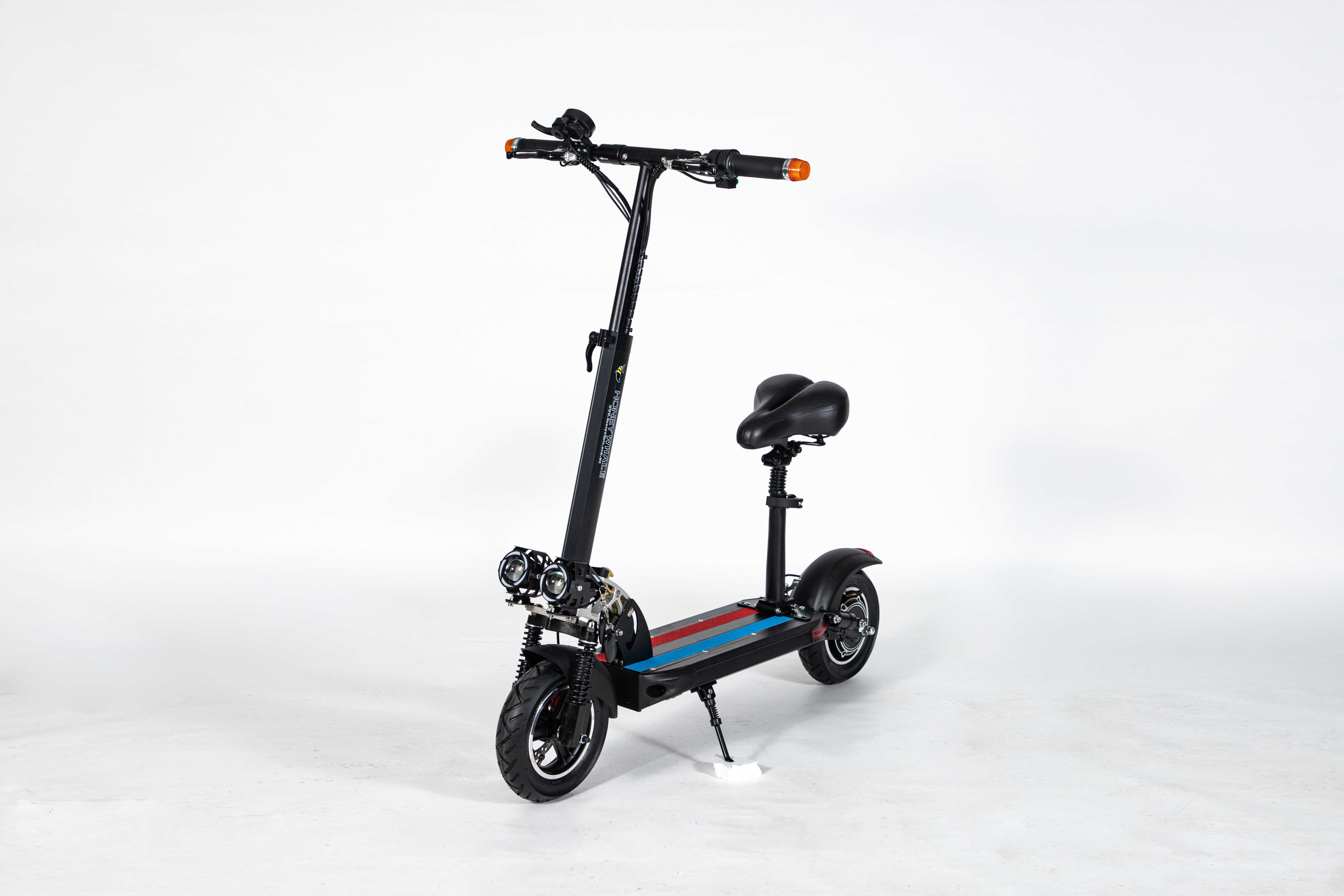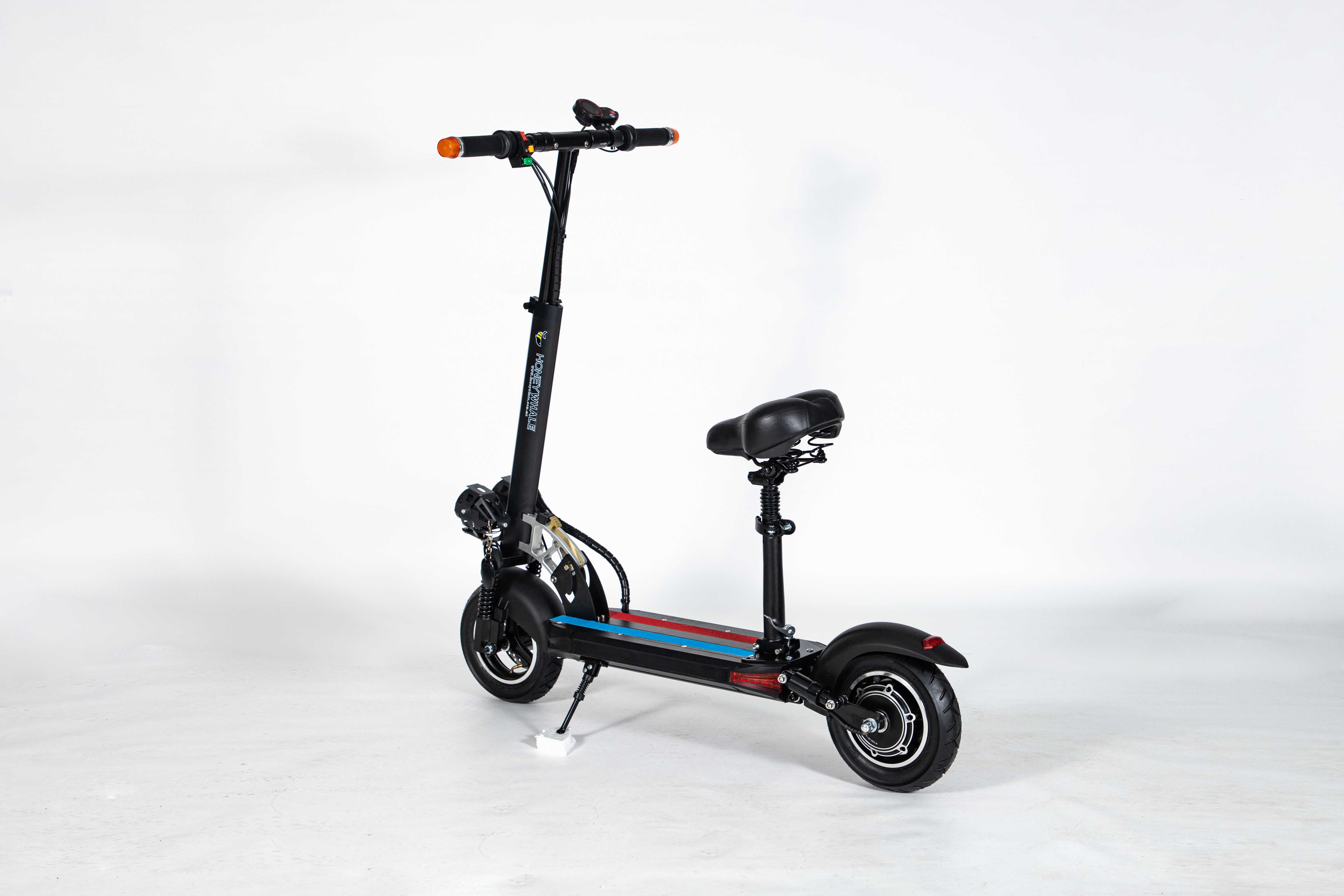 Marco de aleación de aluminio de 10 pulgadas, fácil de plegar, fácil de transportar, motor 36V500W, con aplicación azul, horquilla delantera amortiguadora y horquilla trasera, freno de disco, velocidad 30 km/h, rango de crucero 35km, poste con luces de marcha.
