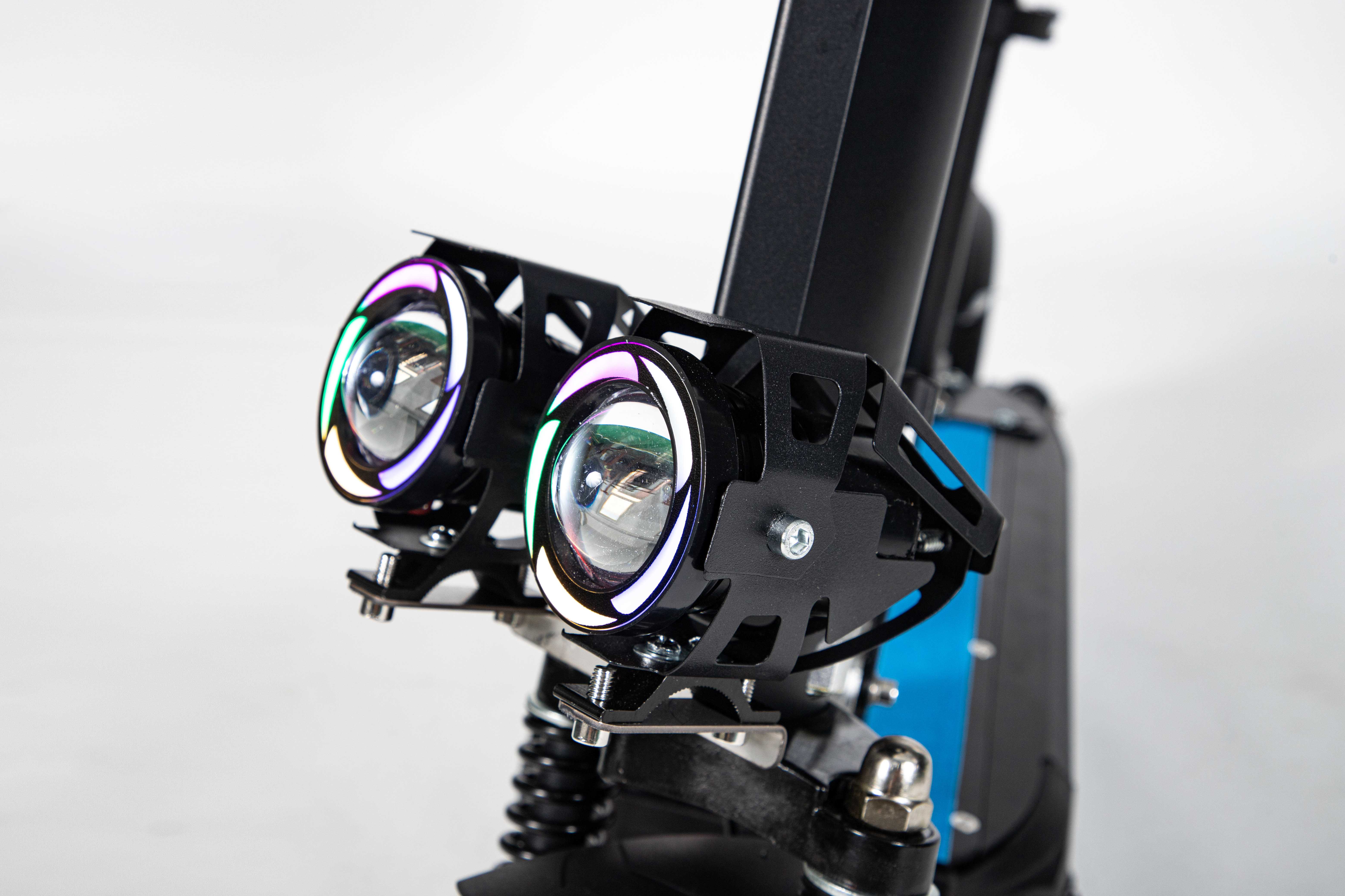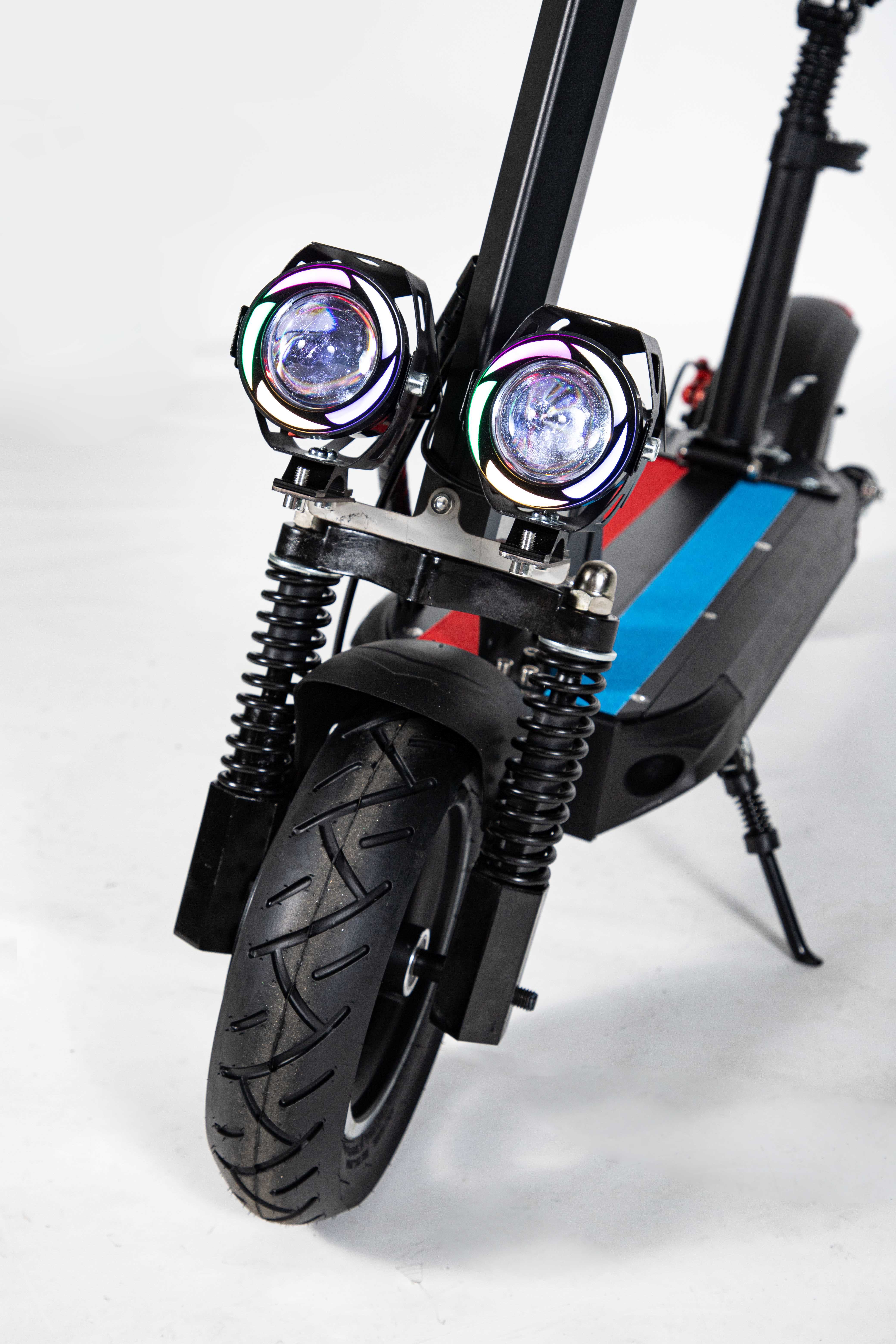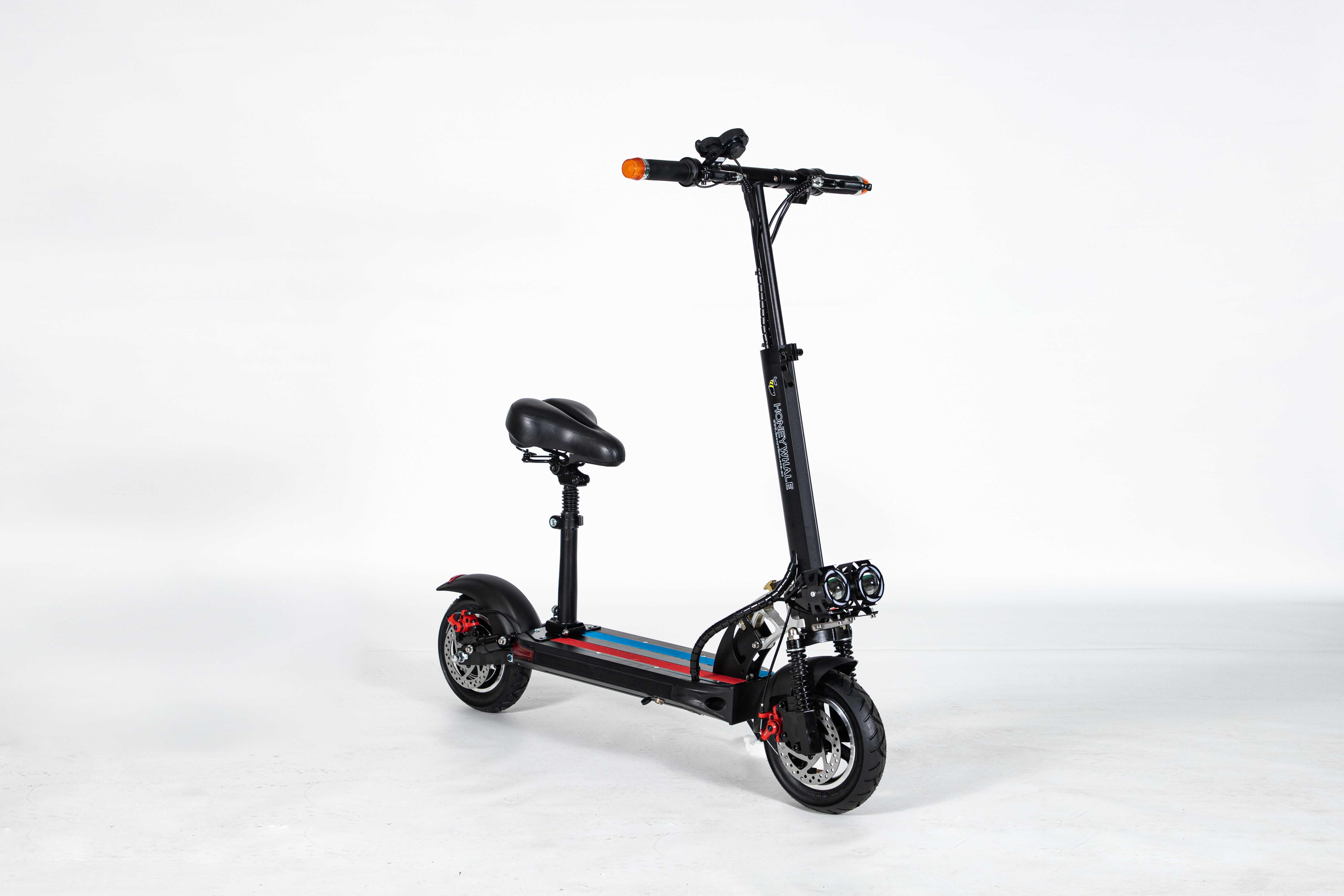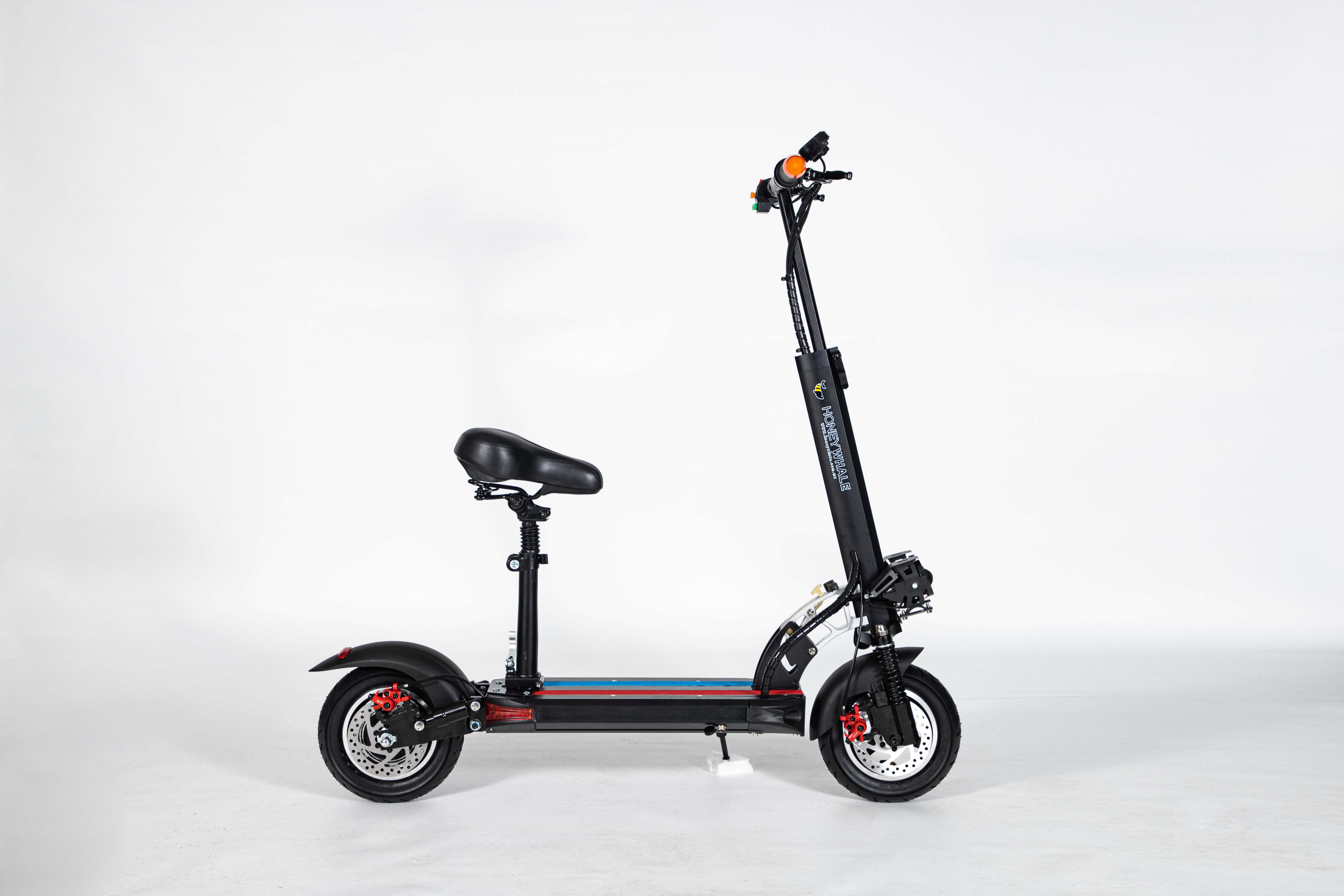 Marco de aleación de aluminio de 10 pulgadas, fácil de plegar, fácil de transportar, motor 36V500W, con aplicación azul, horquilla delantera amortiguadora y horquilla trasera, freno de disco, velocidad 30 km/h, rango de crucero 35km, poste con luces de marcha.
