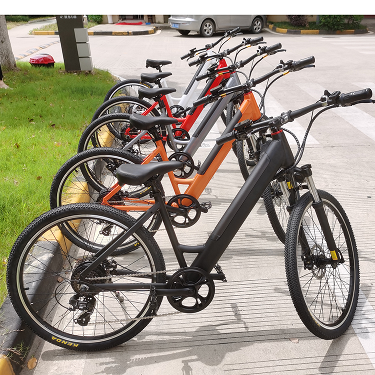26 pulgadas 7-velocidades shimano, choque ajustable y rotura de disco, marco AL, neumáticos 26*2.125, motor 48v250-500w, nivel eléctrico 1-5, sistema de asistencia, batería 48V10AH, rango de 40km 35-40 km/h velocidad, plegable, 21kg NW , 150kg rodamiento personalizado para usted